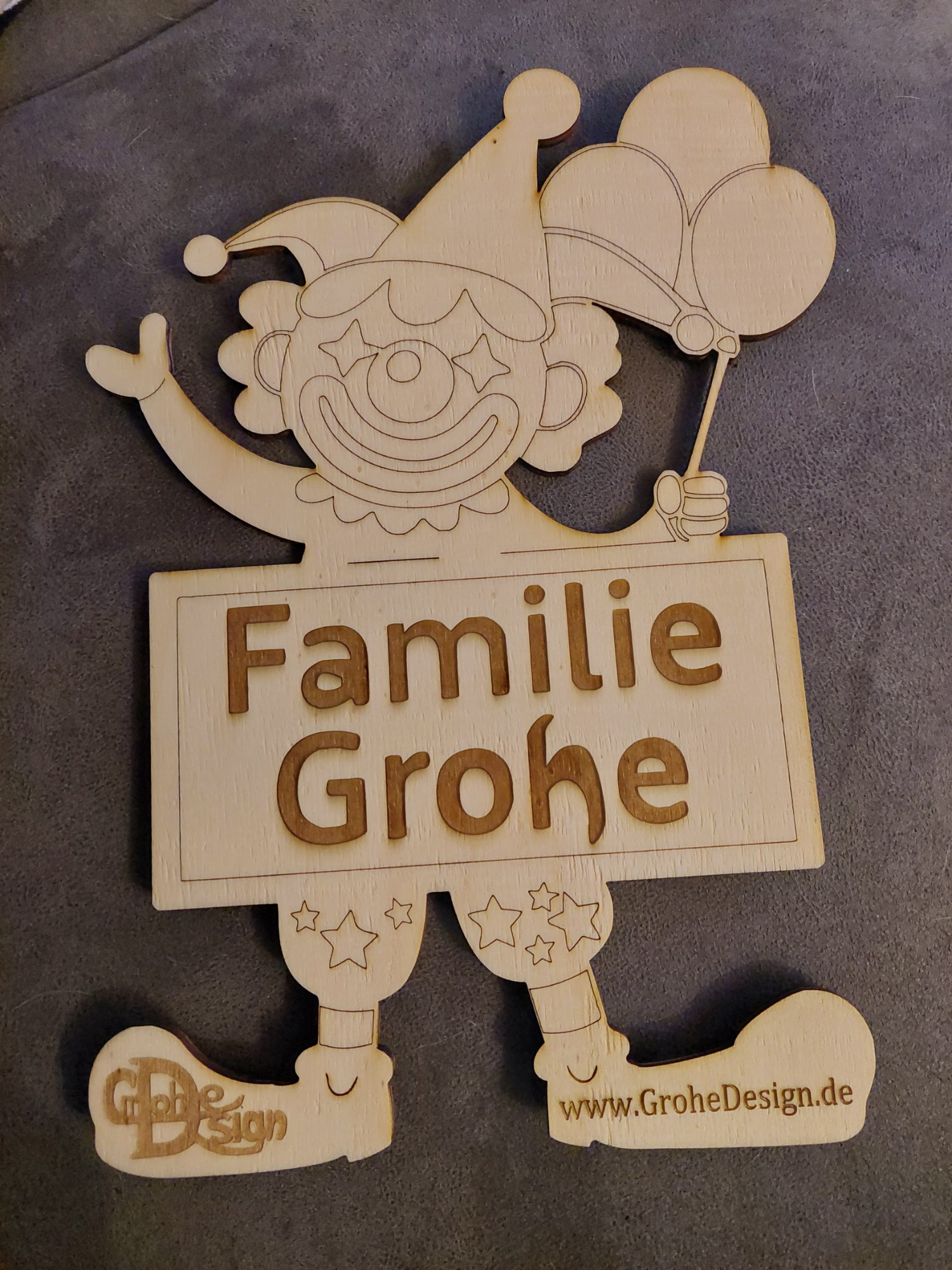 Clown-Türschild mit Familiennamen
